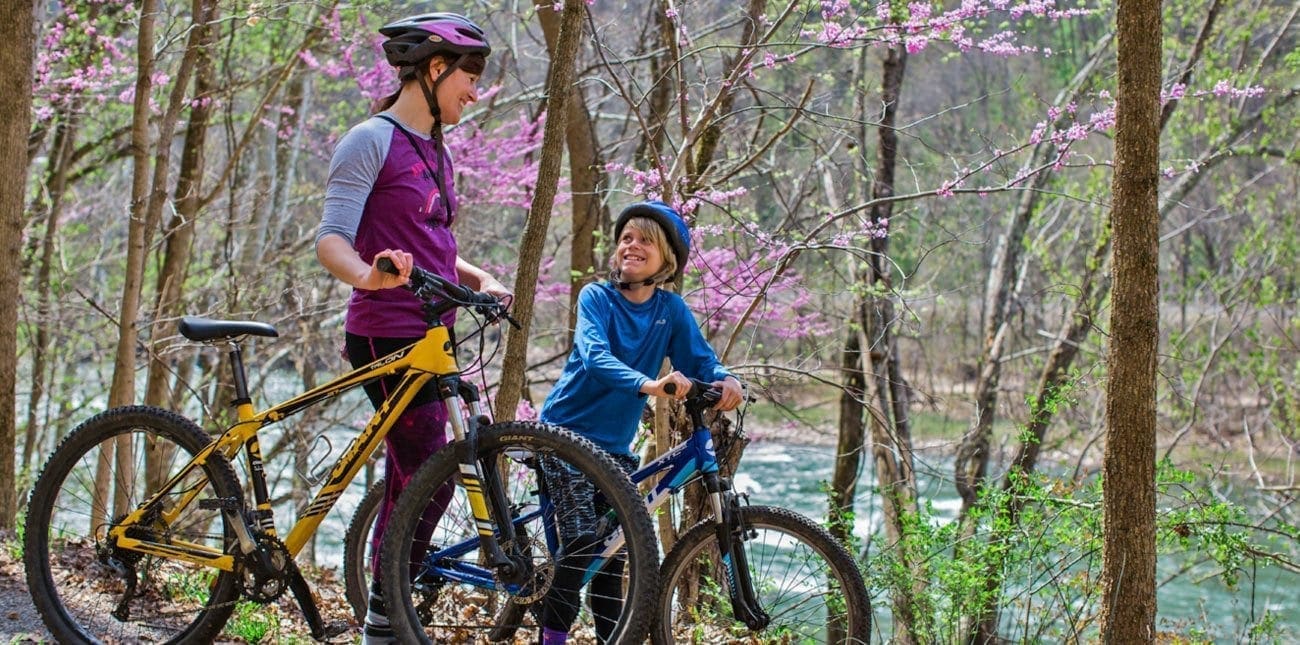 Moral of this Mom-ster’s story? Simple land-based, beginner level activities – such as mountain biking beside the New River on the Southside Junction Trail – can teach your little monsters to recognize beauty as the bright spring colors (Redbuds, Bluebells, Bleeding Hearts, Violets, Dogwoods and more are all in bloom right now!!) are bursting with purples and greens. They also will gain an appreciation for local history while climbing around and exploring the abandoned coal mine towns. Every time they take a breathe of crisp West Virginia clean mountain air while stretching their muscles rock climbing, they will be firing on all senses while exercising. These will be the moments they will always remember from their childhood and crave as adults. (Seriously, if you took an informal poll among our staff, we can guarantee that collectively our most cherished memories are the fun times we had as kids either at summer camp or adventuring with our parents that got us hooked on the outdoors for life.) After all, our mountain air is just as sweet as our summer sunshine… isn’t that how the song goes? Or is it sweeter than moonshine… either way, “Run wild, child. Run wild.”