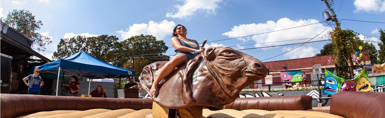 Proper balance is everything. You need to position yourself towards the front of the “seat,” as close to the handle as possible without actually sitting on your hand. This helps you keep maximum control over your body and helps to center your weight. Your body is the counterbalance to the bull. In other words, the weight of your body balances the weight of the bull. If the mechanical bull tips forward, your body should move backwards. If the bull’s head moves backwards, your body should move forward.