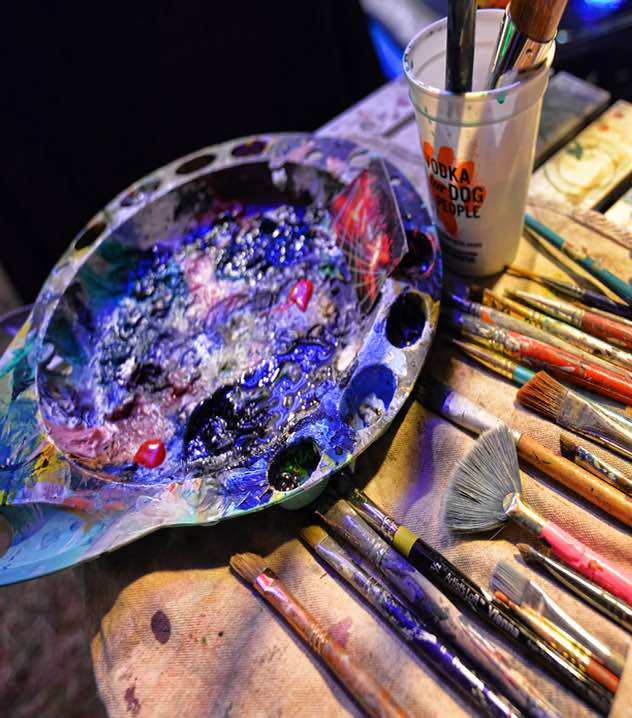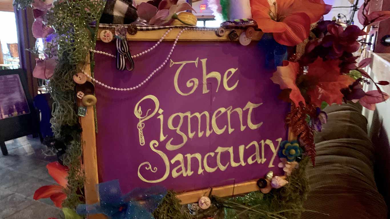 The Pigment Sanctuary artist collective came together over eight years ago as a bunch of artists wanting to go to concerts and paint all the time. There’s a special comradery that is born out of spending weekend after weekend at festival after festival, painting after painting. We quickly realized that what we could create together was better than competing against each other. We would set up galleries under the same tents, sometimes as small as a 10×10 canopy, sometimes a circus tent that demanded two medium-sized elephants to erect the poles. We had as many triumphs as we did tragedies, and the ones who stuck around through adverse conditions, and even a tornado once, are the ones that make up the Pigment Sanctuary.