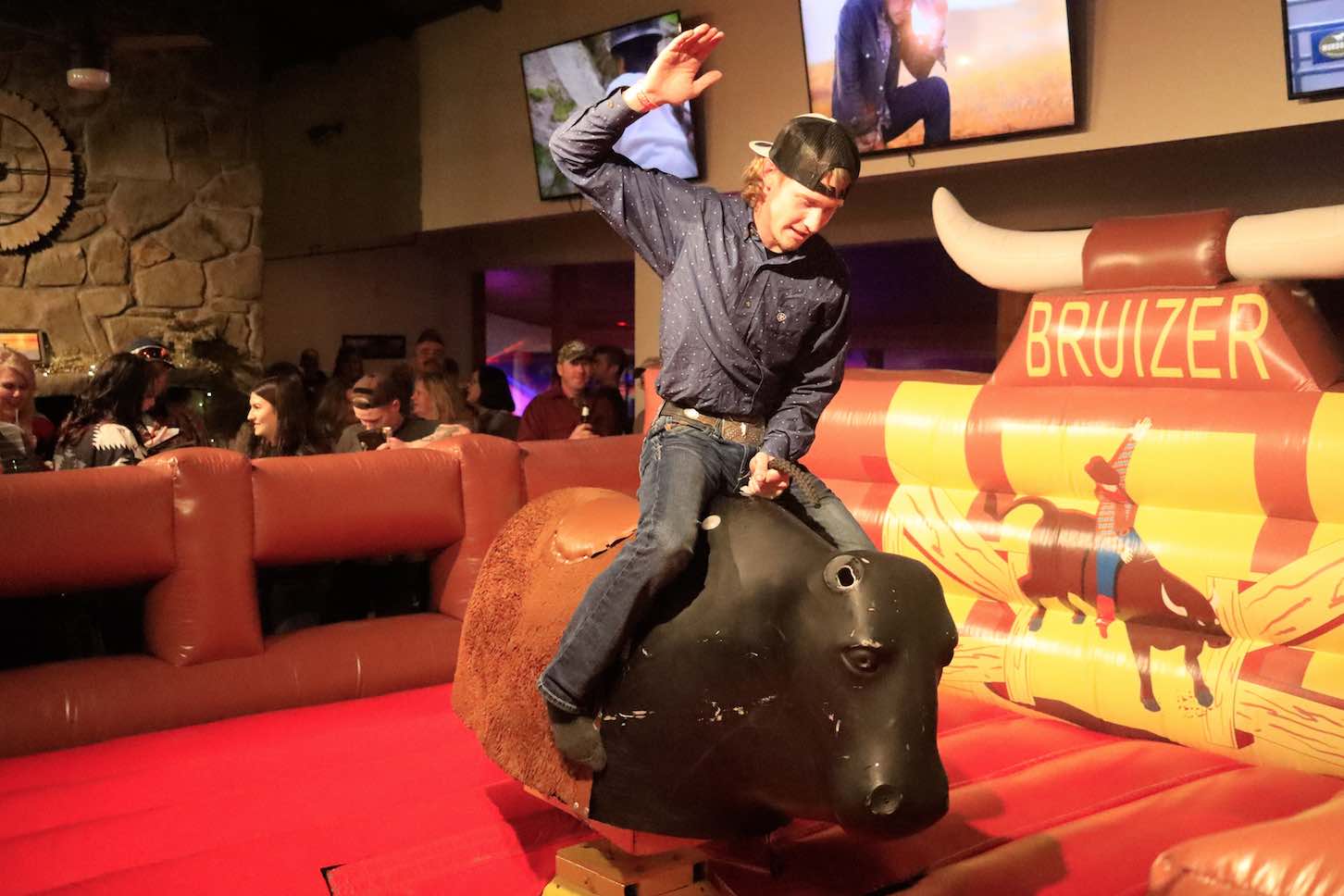 Can you hold on for 8 seconds? You’ll laugh till it hurts watching your friends get thrown from the bucking bull. Ride our mechanical bull as much as you want all night long with your ticket to the show. Bull riding starts at 6pm and runs until 11pm. No minimum age for bull riders but there is a 300 lbs weight limit.