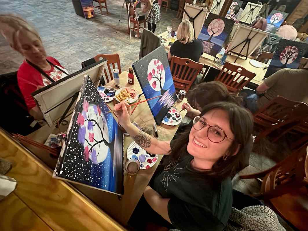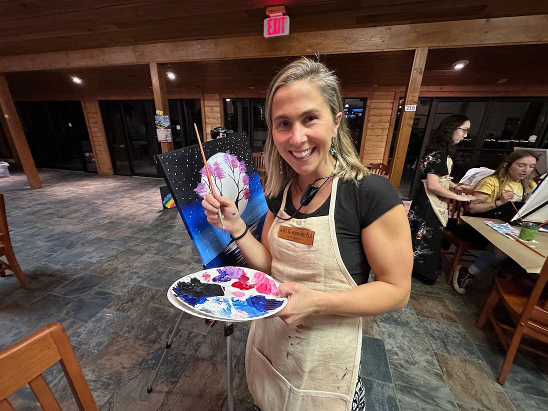 Kelly moved to Fayetteville, West Virginia in 2016 and began teaching art classes for the Fayetteville Arts Coalition, a local nonprofit in the community, to both adults and children. A few years later in 2018, Kelly began her own business, Wild and Wonderful Paint Parties. She has since helped thousands of delighted participants of all ages craft their own works of art through corporate team building events, birthday and bachelorette parties, and youth summer camps all around West Virginia.