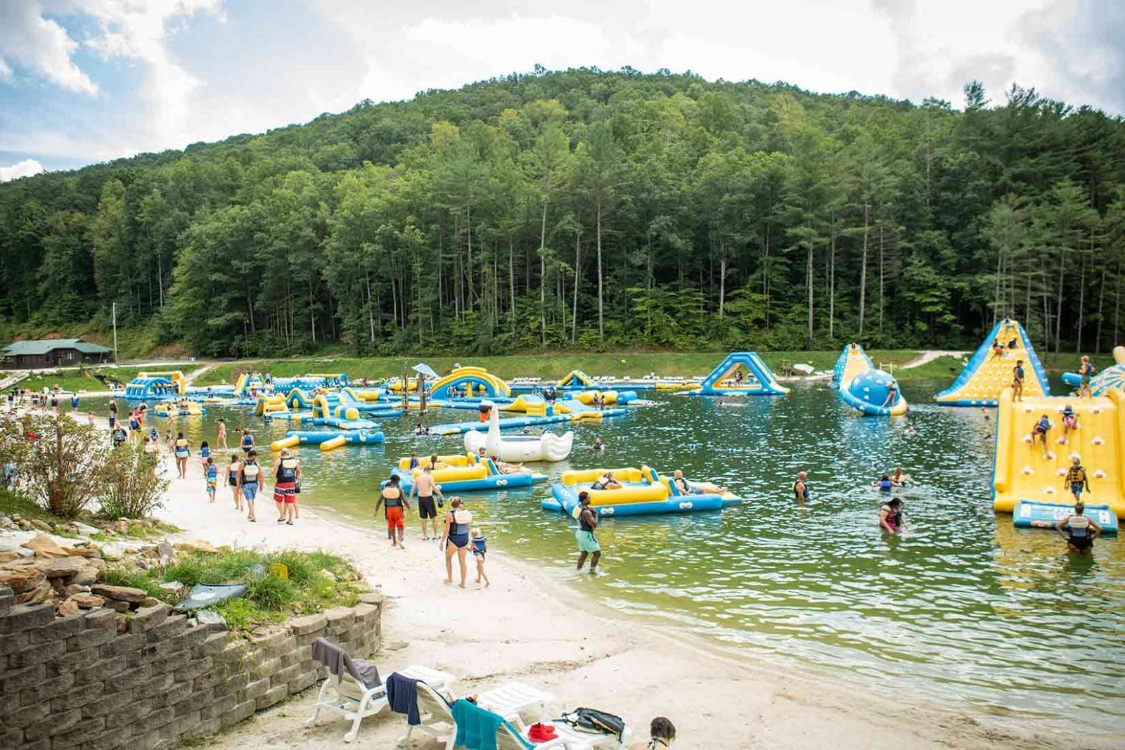Head out to the inflatable obstacle course, where you can climb, slide, and bounce your way through the water. Challenge your friends to race down the tandem slides or zipline into the lake for a splash.