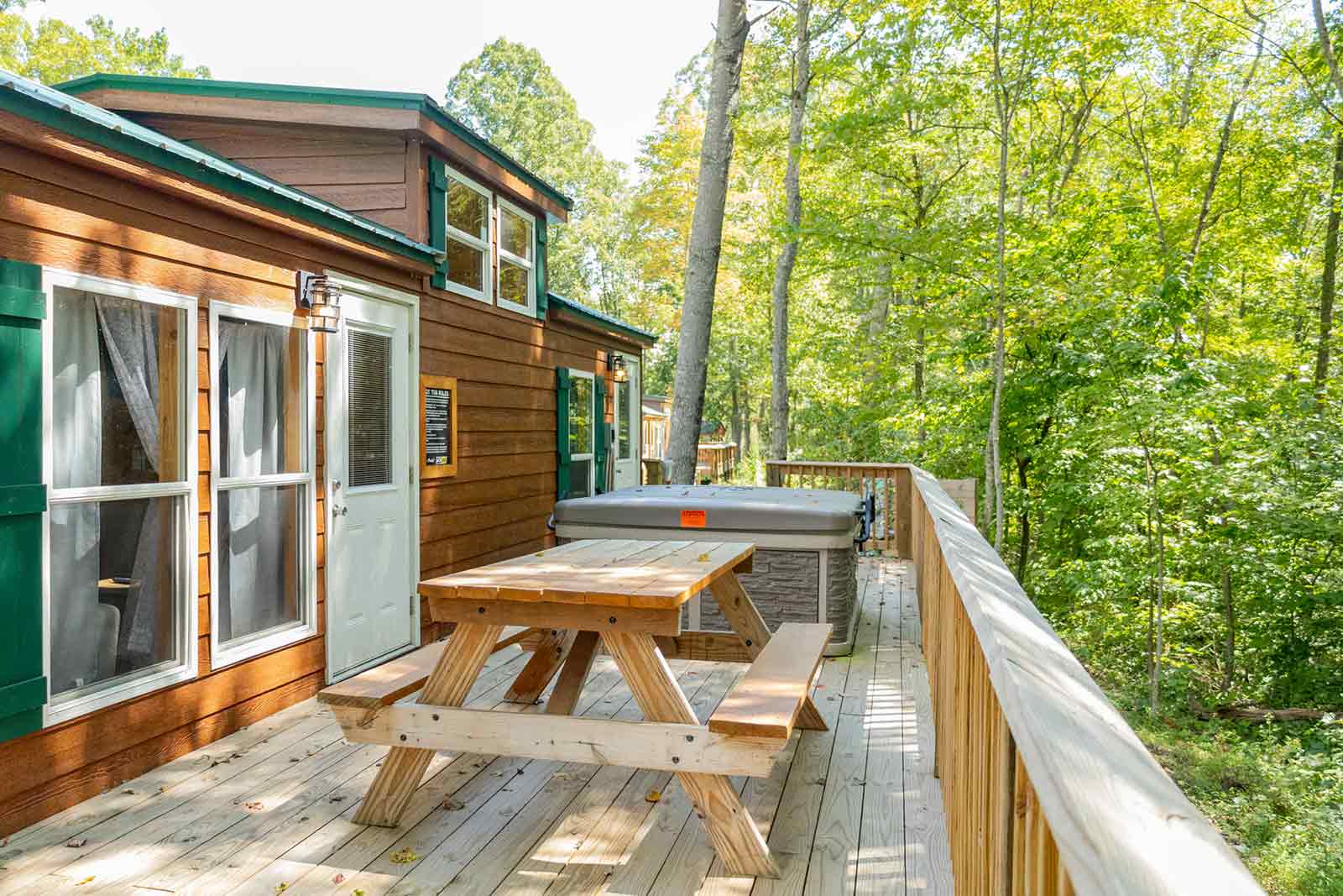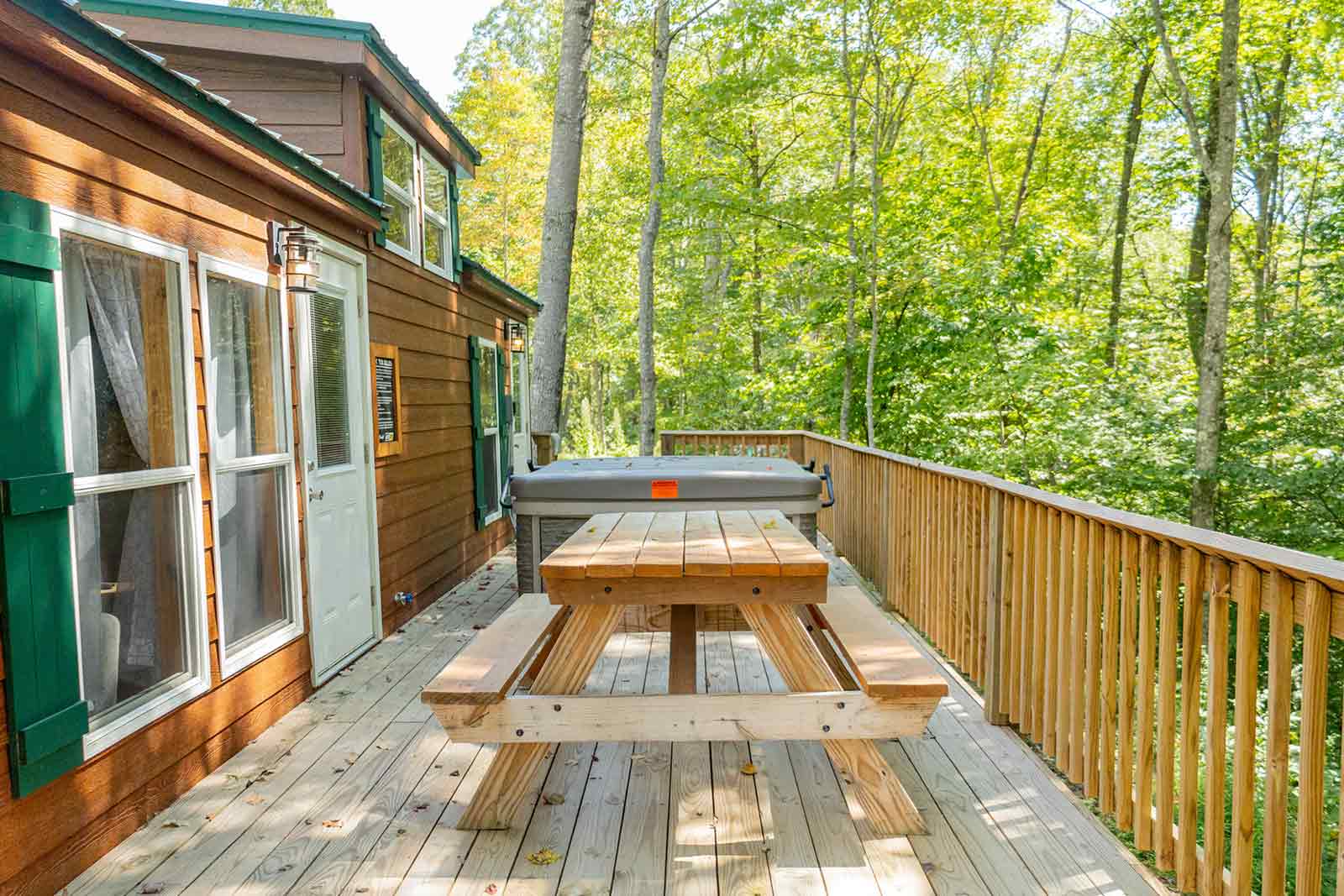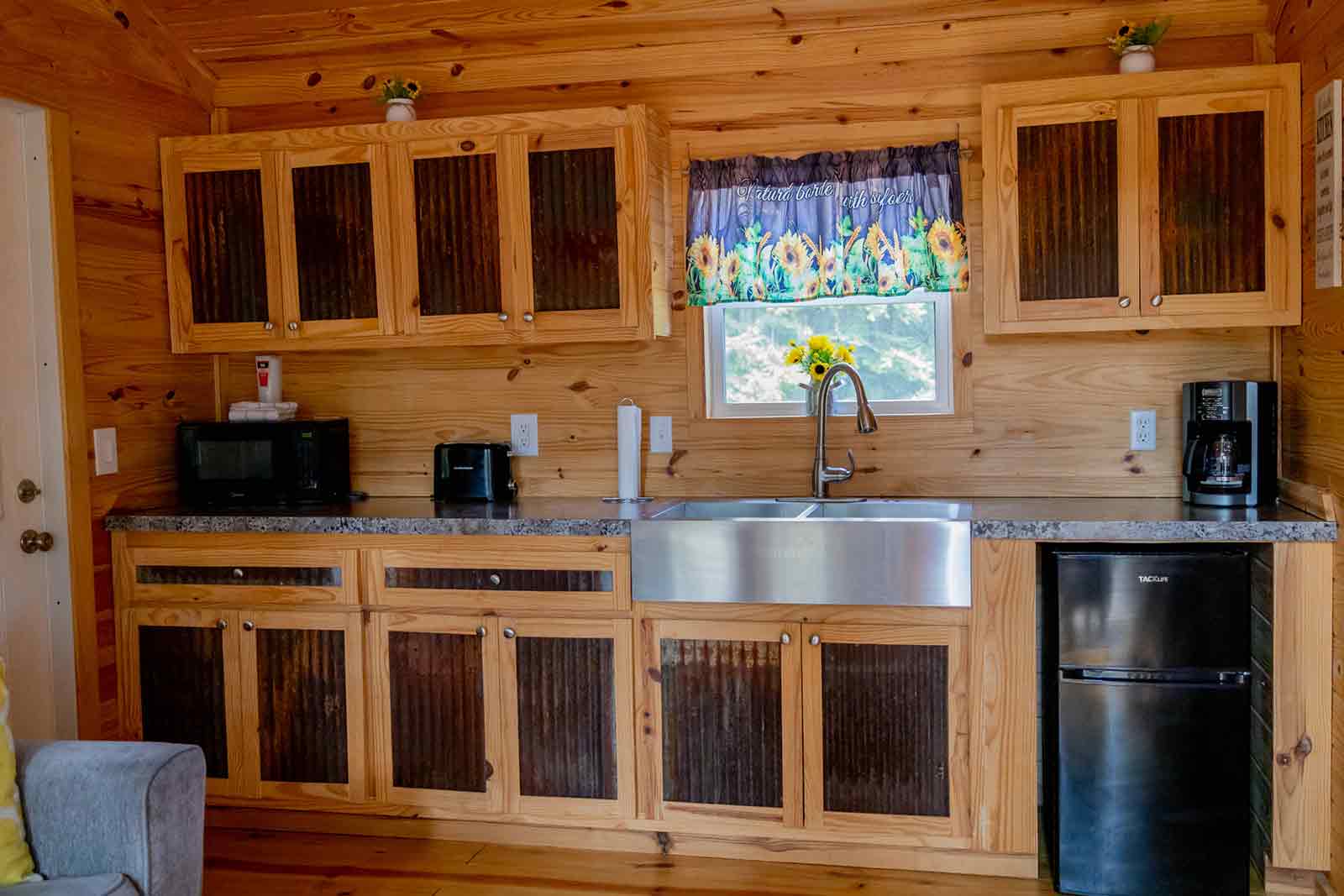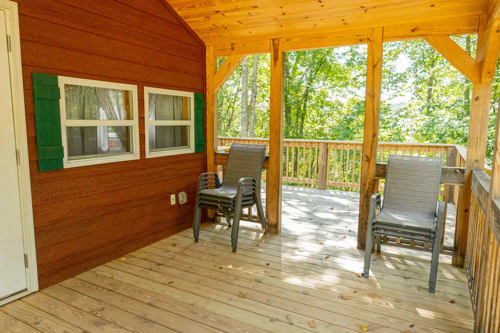 Getaway to the New River Gorge National Park and enjoy this cozy cabin that sleeps up to 4 guests. Great for couples or small families this cabin includes a kitchenette, full bathroom, 2 bunks and a queen size bed in the private bedroom.