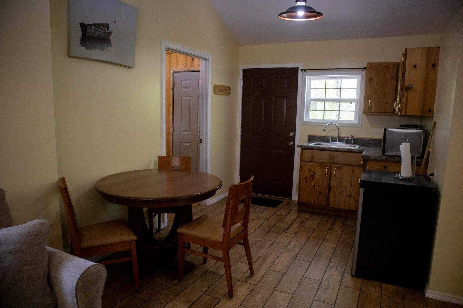 - A kitchenette (microwave, mini fridge and coffee pot)