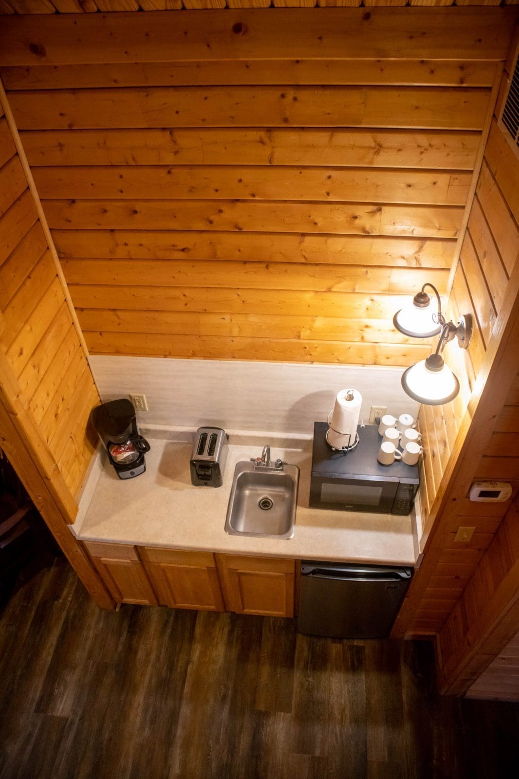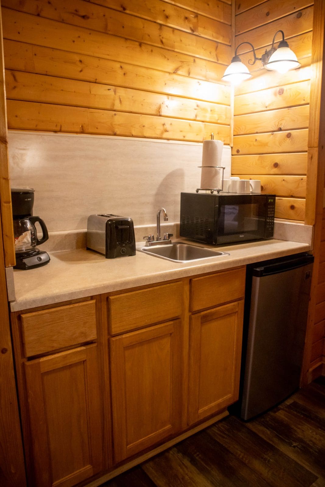 - A kitchenette (microwave, mini fridge and coffee pot)