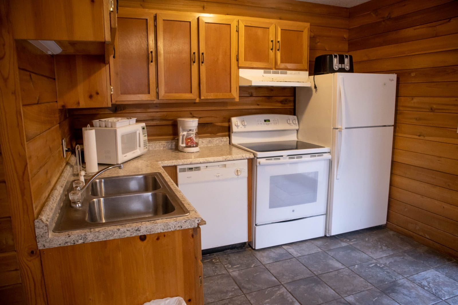 - A full kitchen with basic cookware, flatware, dishes, cups & mugs
