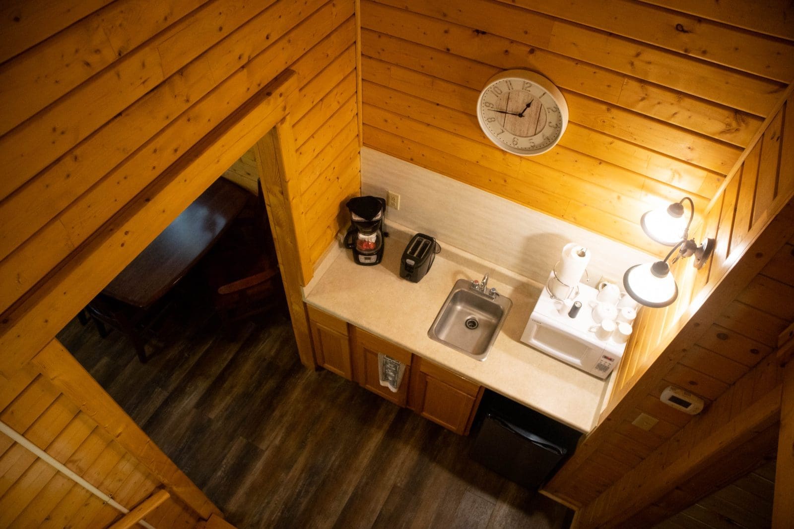 - A kitchenette (microwave, mini fridge and coffee pot)