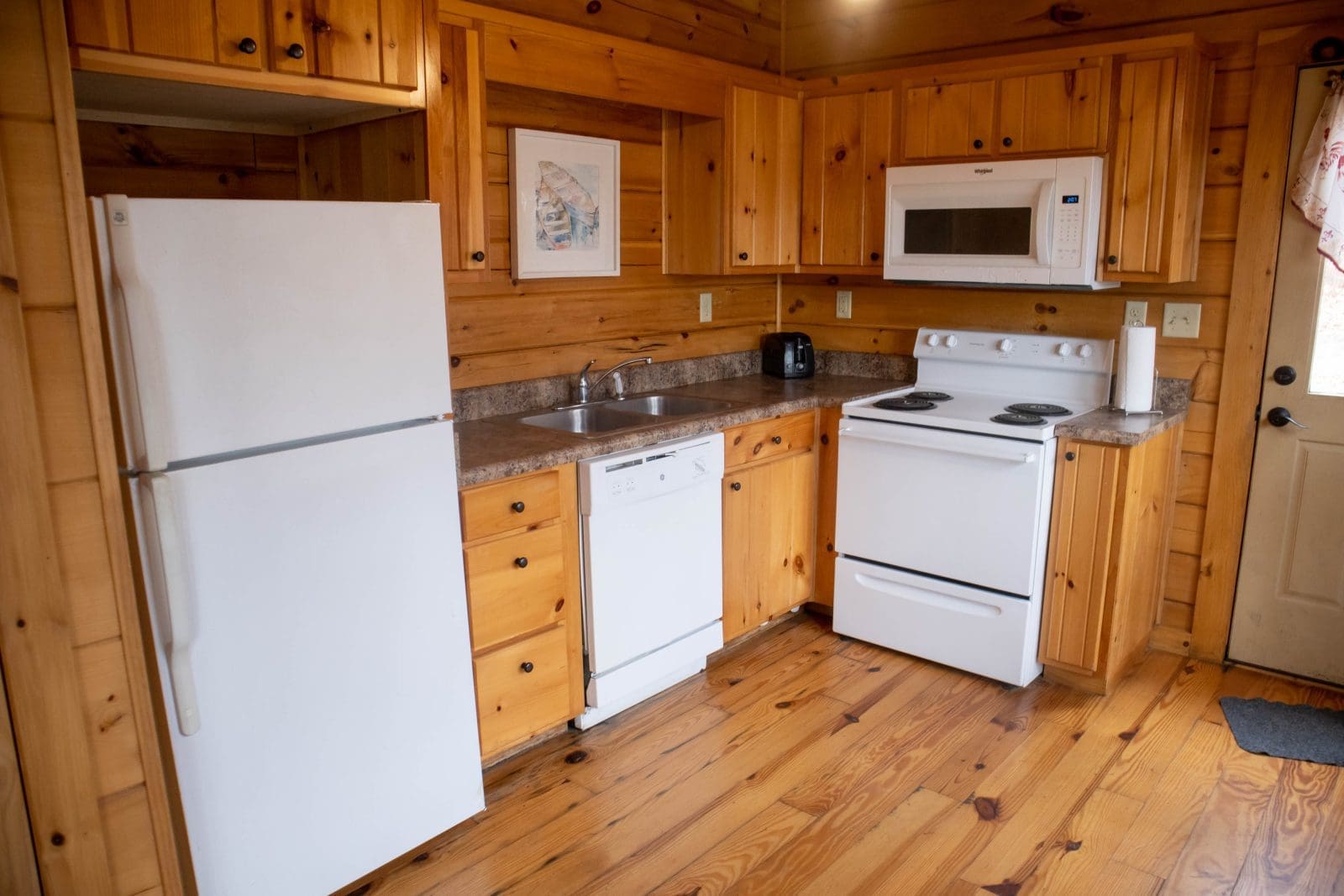 - A full kitchen with basic cookware, flatware, dishes, cups & mugs