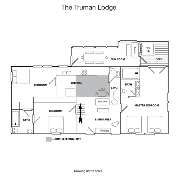 Named for President Harry S. Truman, who used the historic lodge for hunting trips, the Truman Lodge is perched right on the shore of ACE Lake. Our largest cabin puts you within easy walking distance of just about everything.