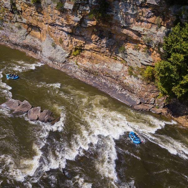 Just to the north of The Gorge, another West Virginia outdoor adventure paradise exists, complete with its own tumultuous, world class whitewater, abundant rock climbing, and ruggedly wild landscape. The Gauley River National Recreation Area entails 25 miles of the Gauley River, along with 5.5 miles of its major tributary, the Meadow River. Altogether, the park encompasses over 11,000 acres, from Summersville Lake and Dam down towards the confluence with the New River. Largely inaccessible other than by water, the remote Gauley and Meadow Rivers are both well known in the whitewater world for their technical, boulder-strewn rapids. While the Meadow is only paddled privately by highly skilled boaters, the Gauley is renowned among rafters as one of the most demanding and popular commercial runs in the world.