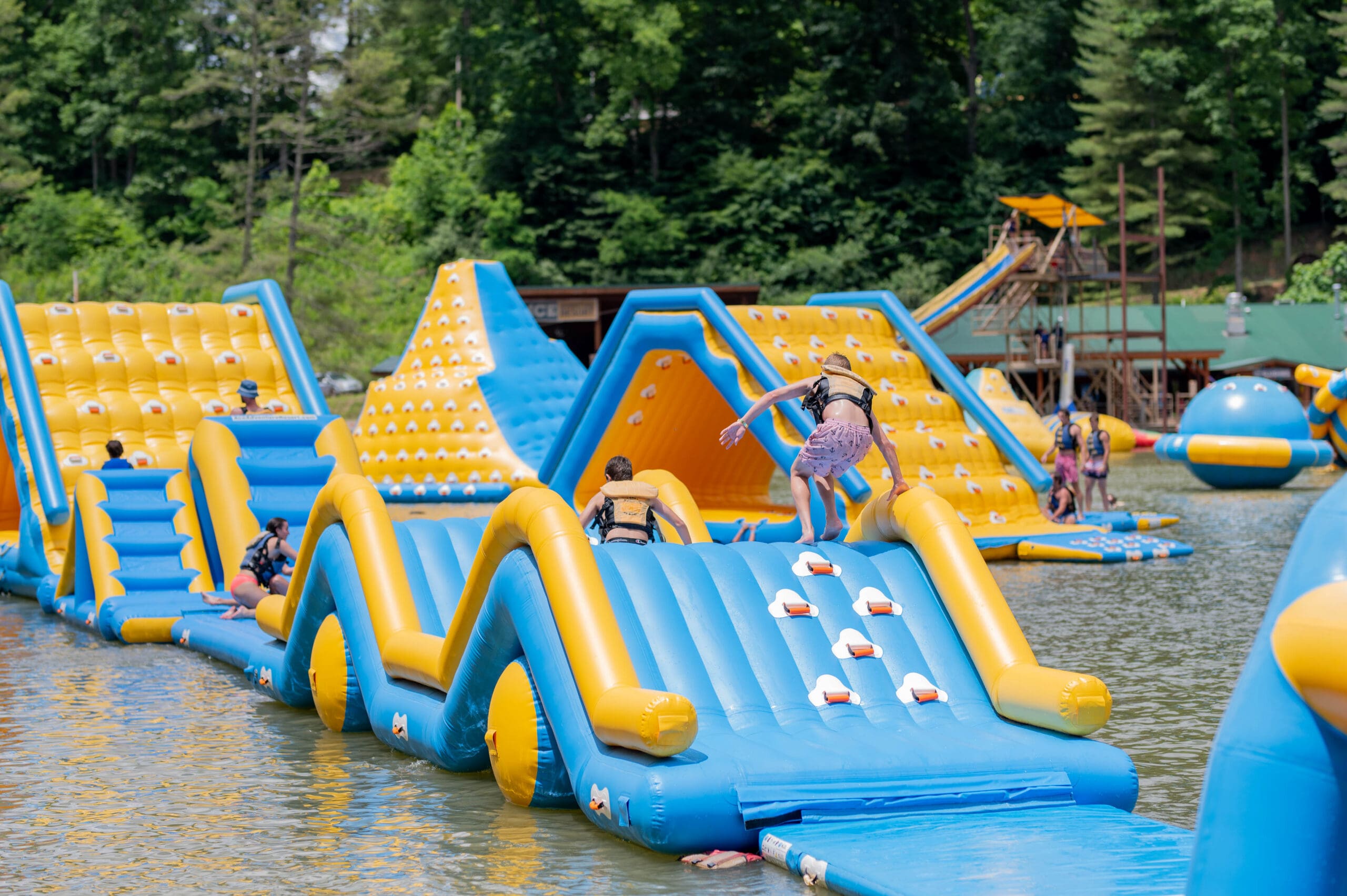 A five-acre spring fed lake water park? Yeah, we got that. Turn the kids (and yourself!) loose at ACE Adventure Water Park at ACE this summer and experience all the sun, fun, and waterslides you can with a full day waterpark pass. Spend the day relaxing on the white sandy beach, or head out to the inflatable obstacles and bounce, splash, and jump your way into the most memorable waterpark experience ever.