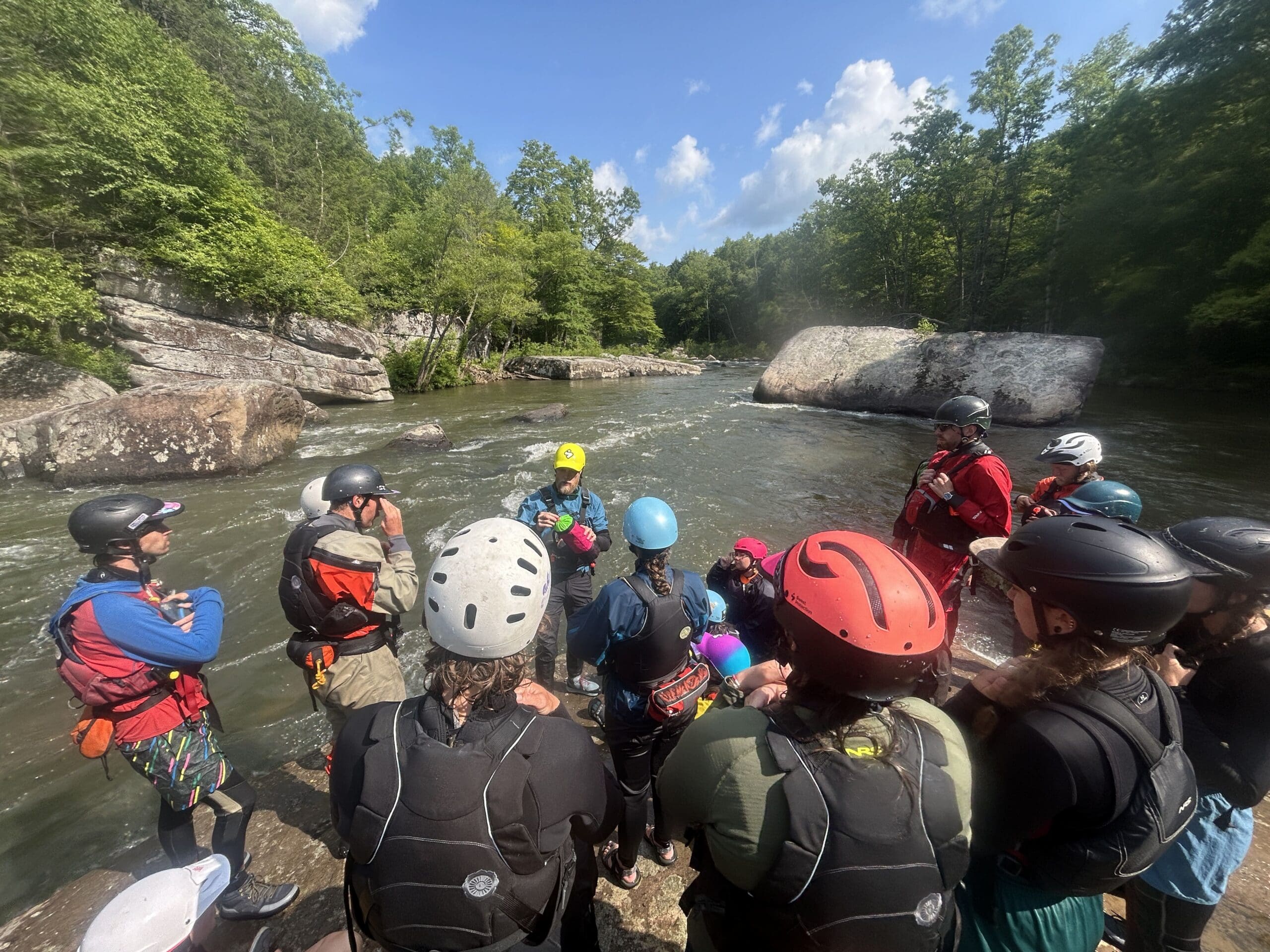 - Personal rescue gear including throw rope, PFD, carabiners, whistle, knife