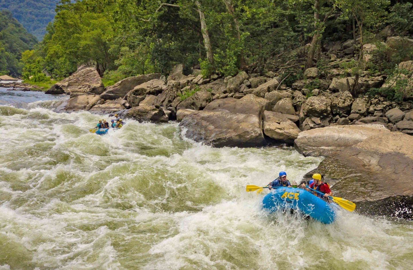 The ancient New River cuts and winds its way through the mountains, forming 6.5 miles of some of the best whitewater on the East Coast. The New River Gorge National Park is one of the reasons people want to visit West Virginia, and rafting it offers a whole new outlook on the scenery that makes it spectacular. A half day rafting trip on the New River will save you time, so that you have more time to sightsee, shop in the nearby town of Fayetteville, or participate in another activity at ACE.