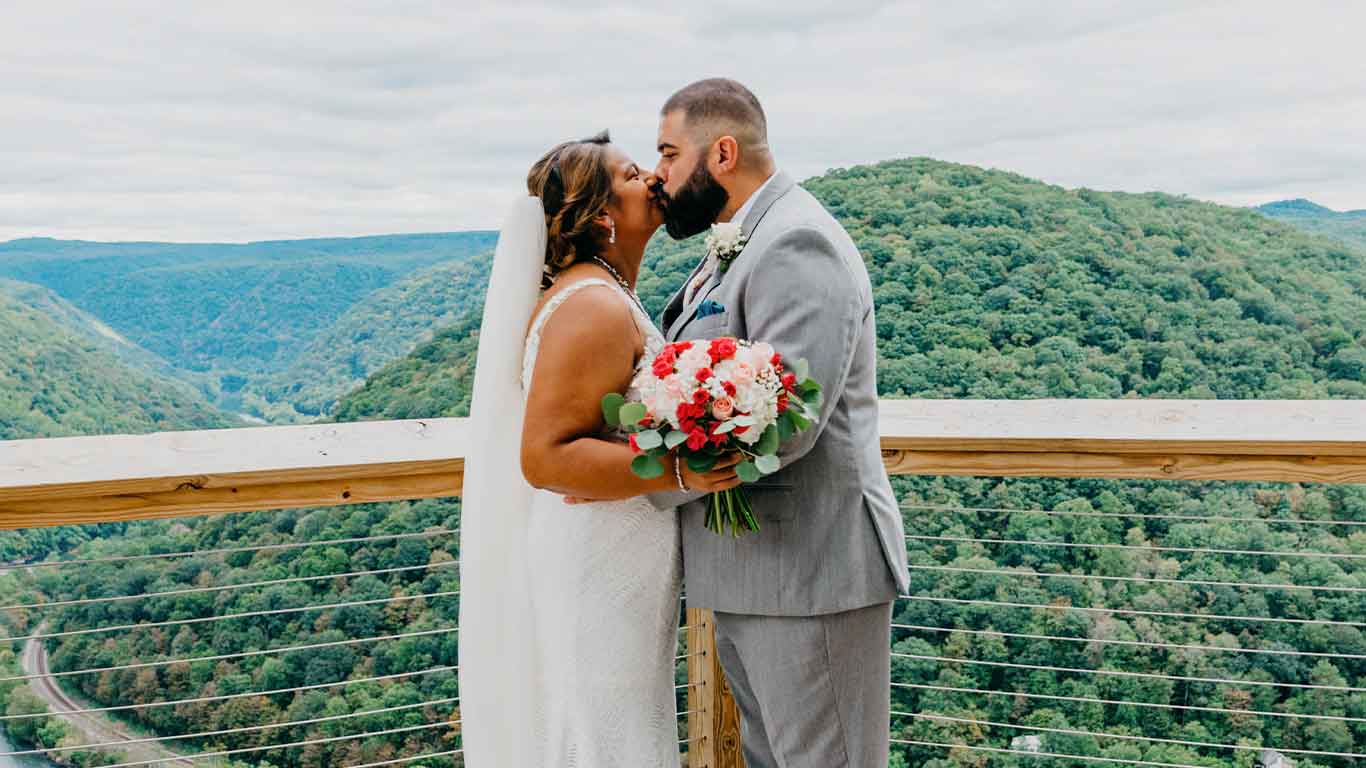 Runaway to the mountains together and leave the hassle, the stress, and the drama behind you! Our New River Gorge, West Virginia Elopement Package gives you everything that you need for your dream elopement in an incredible setting. The Concho Wedding Deck overlooks the New River Gorge, the historic town of Thurmond, and a breathtaking horseshoe turn in the New River. The view has been described as one of the best in The New River Gorge, and with our wedding deck completed in 2019, it’s now the best place in the New River Gorge for your elopement!