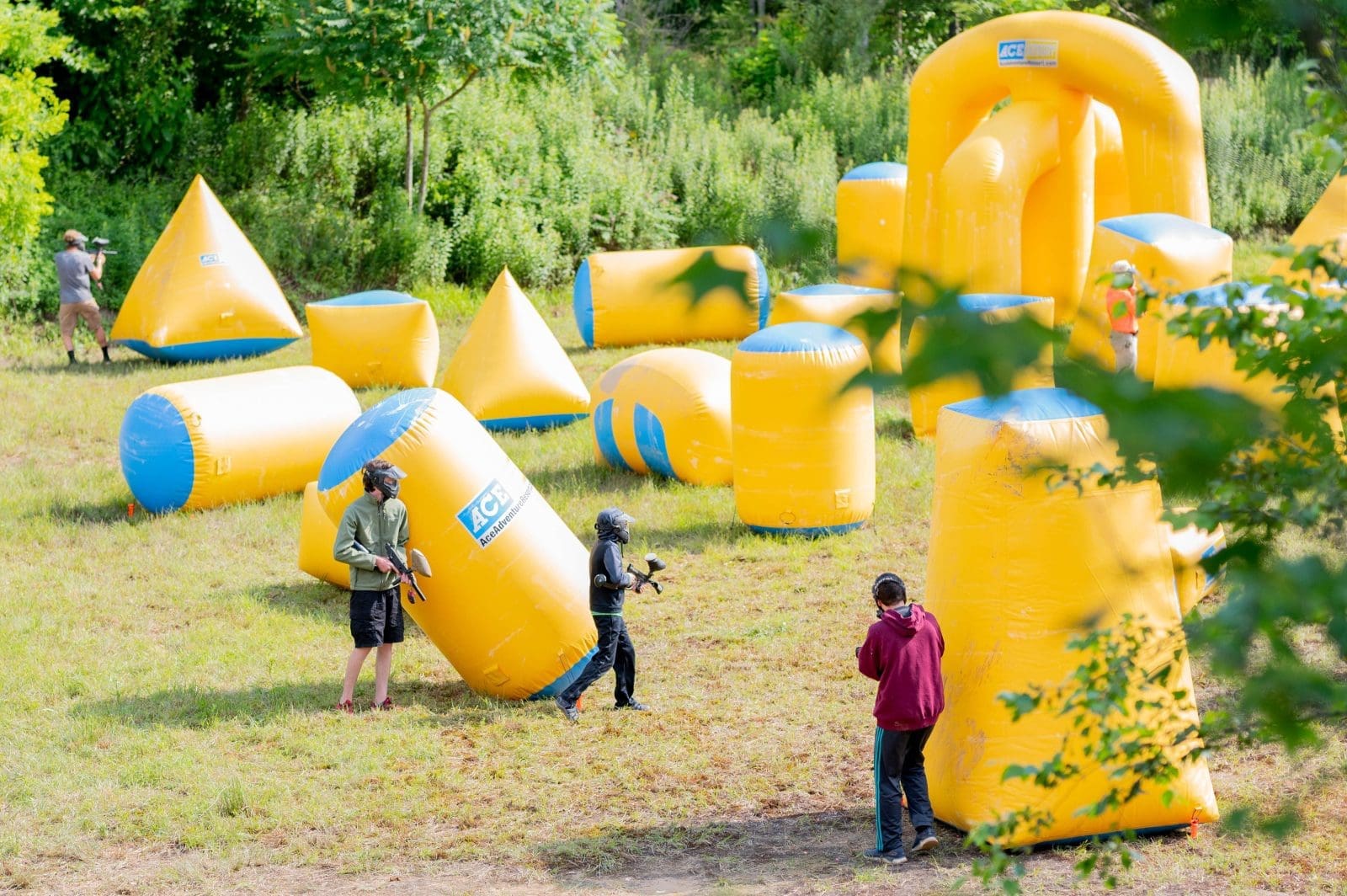 The field itself is an open field, easily accessible, that is perfect for team building and quick pick up battles. Using inflatable obstacles we have designed a fast-paced course that will keep you on your toes and demand a good team strategy if you want to win. Ideal for general team play or close-quarters combat, you can choose different games like speedball, capture the flag and many other formats that you can do over and over again.