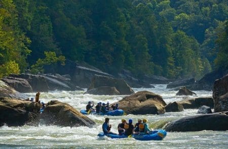 From beautiful mountains to some of the most challenging West Virginia whitewater rafting, Gauley River rapids are a force to be reckoned with and a badge of honor you will never forget. With 50+ rapids this remote 12 miles of river will carry you through class II – V whitewater, including a 14’ cascading waterfall. Watch the show and enjoy a delicious and hot riverside lunch served by your favorite guides. Boats and lodging fill up fast, ‘cuz it’s some pretty fun stuff